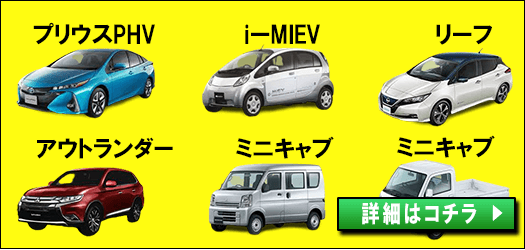 電気自動車(EV車)の対応車種は以下で、日産車と三菱車がメインとなり、特にバッテリー容量が大きい日産リーフを所有されているお客様からのお問合せが多数です。
